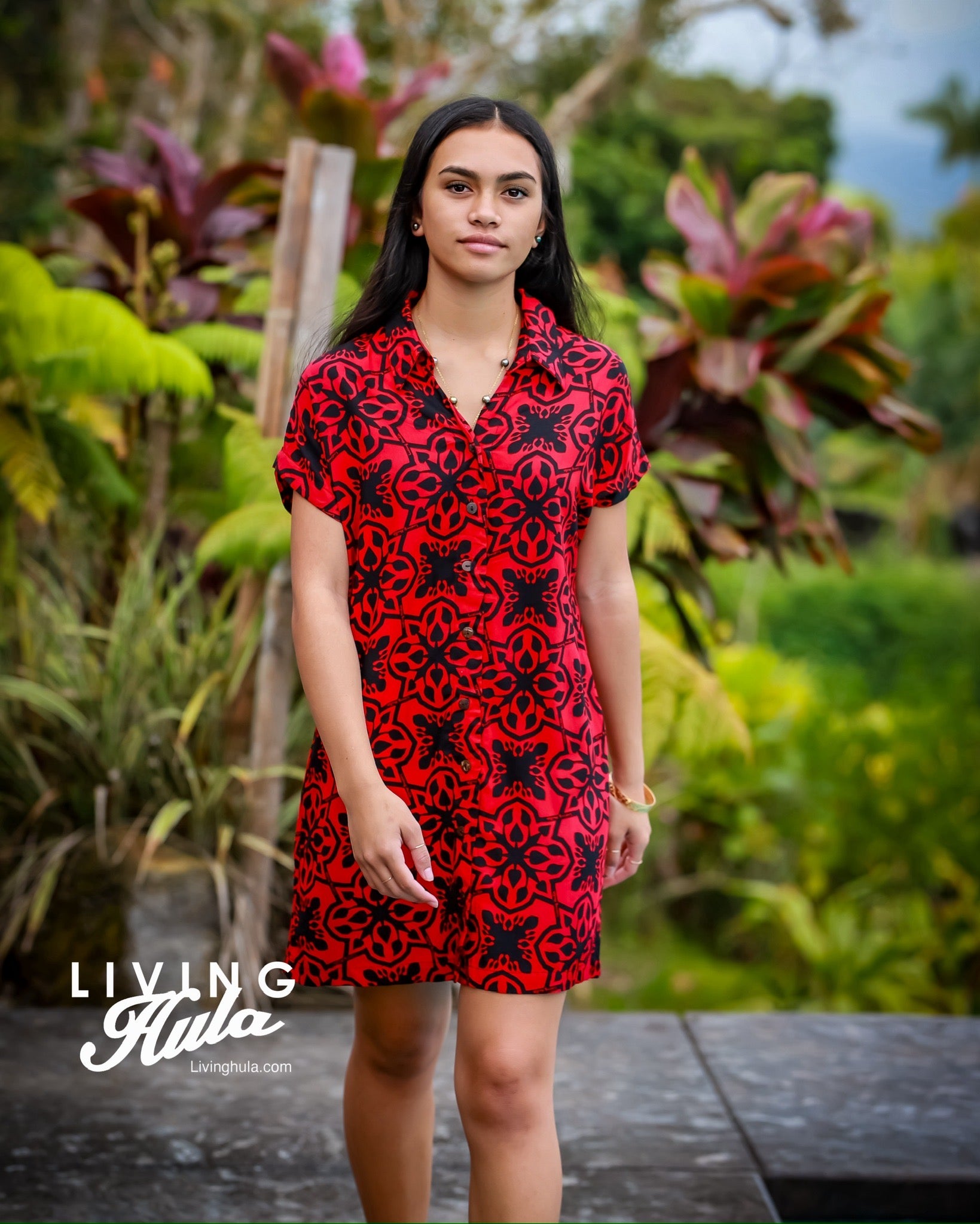 100% Rayon  High low  Cut outs back of neck Unlined Pockets Coconut button down Hand wash & hang dry Model wearing size 12