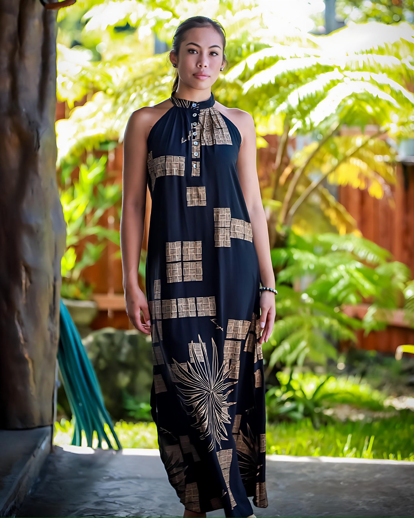 100% Rayon Halter button down with pearl buttons Hand wash & hang dry Model wearing size XS Dress run big. Please order one size down.