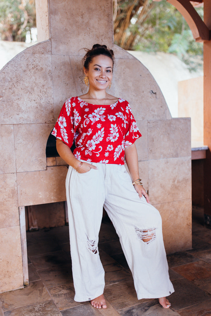 100% Rayon Round neck Hip length Hand wash and Hand dry Model wearing size XS